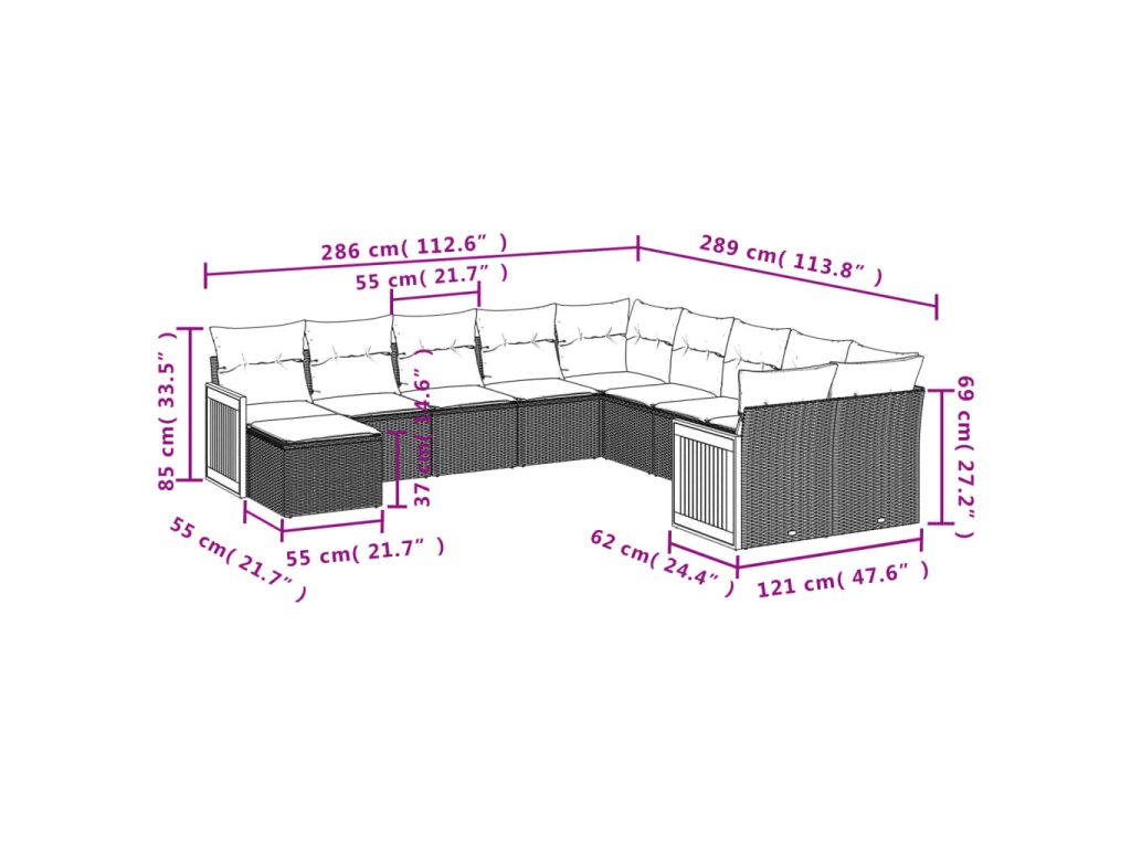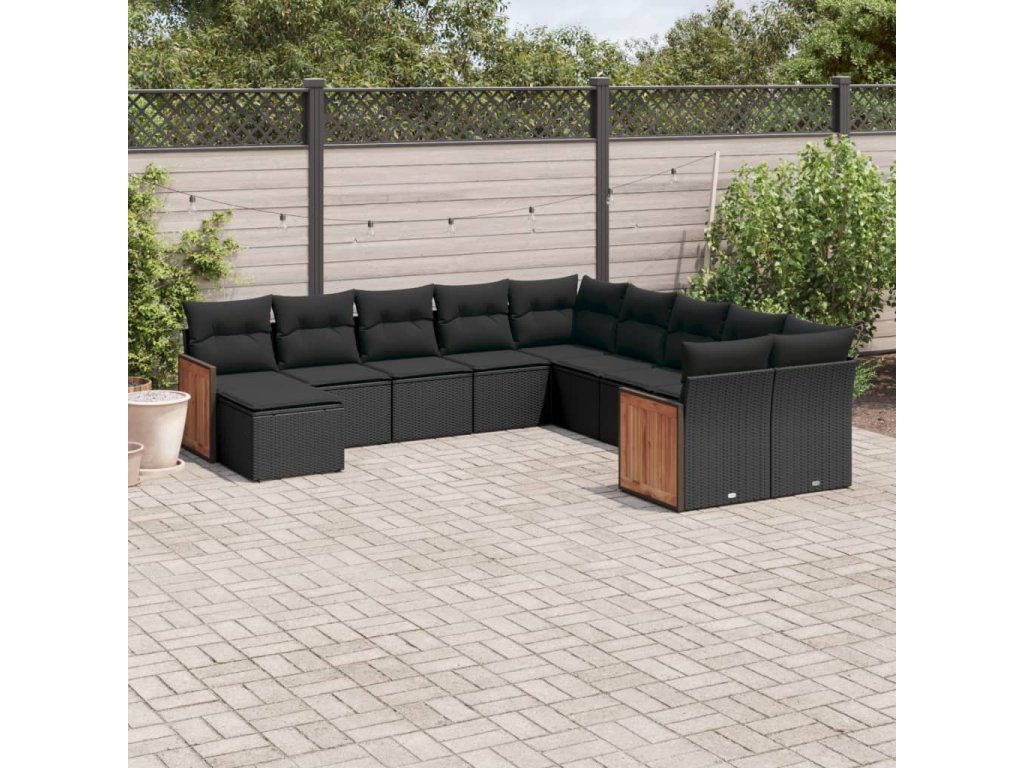 11dílná zahradní sedací souprava s poduškami černá polyratan 3228246