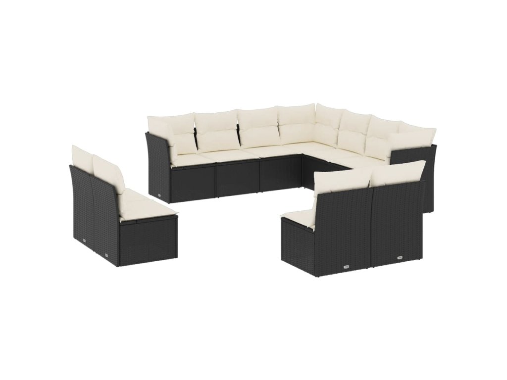 11dílná zahradní sedací souprava s poduškami černá polyratan 3249655
