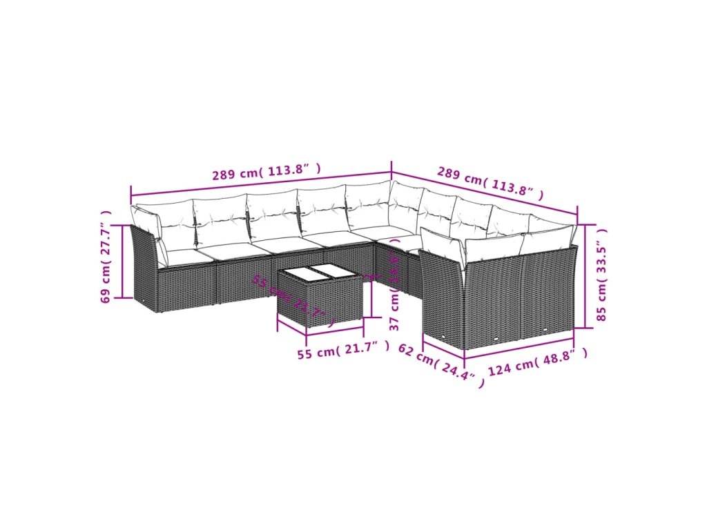 11dílná zahradní sedací souprava s poduškami černá polyratan 3250085