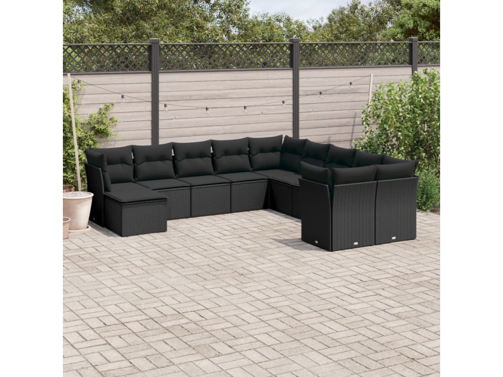 11dílná zahradní sedací souprava s poduškami černá polyratan 3250444