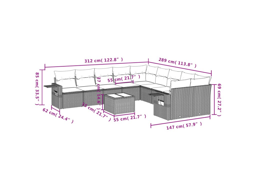 11dílná zahradní sedací souprava s poduškami černá polyratan 3253052