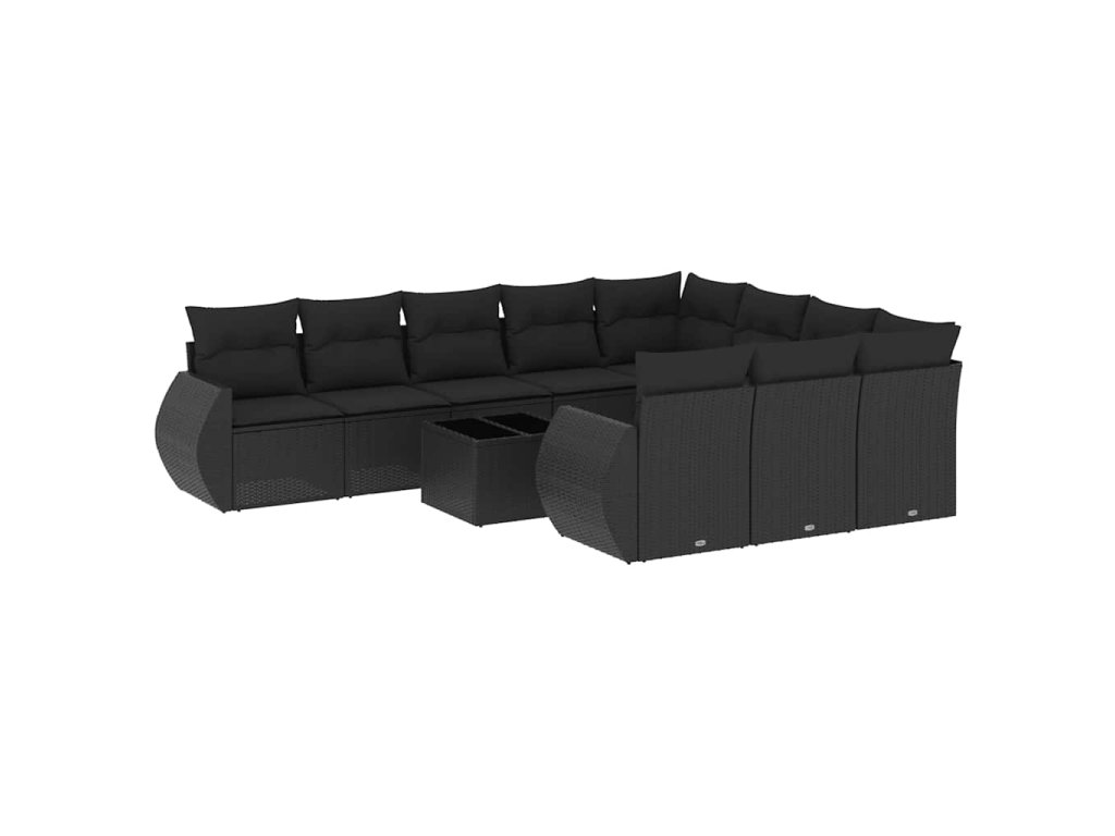 11dílná zahradní sedací souprava s poduškami černá polyratan 3254232