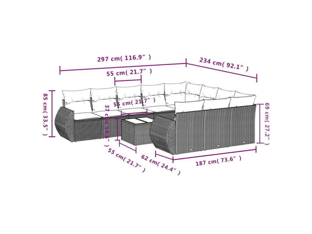Tato zahradní sedací souprava je dokonalým doplňkem vaší zahrady, terasy nebo dvorku a poskytne vám pohodlné a příjemné místo, kde si můžete povídat s rodinou a přáteli nebo jen tak odpočívat a užívat si pobyt venku.