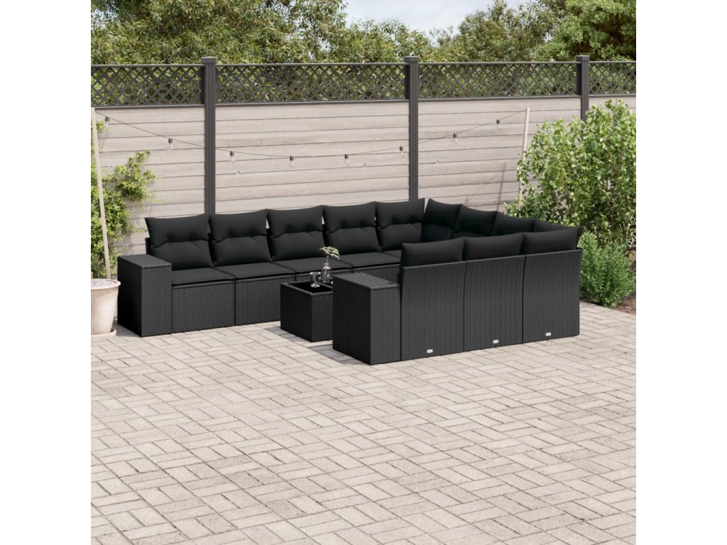 11dílná zahradní sedací souprava s poduškami černá polyratan 3255432