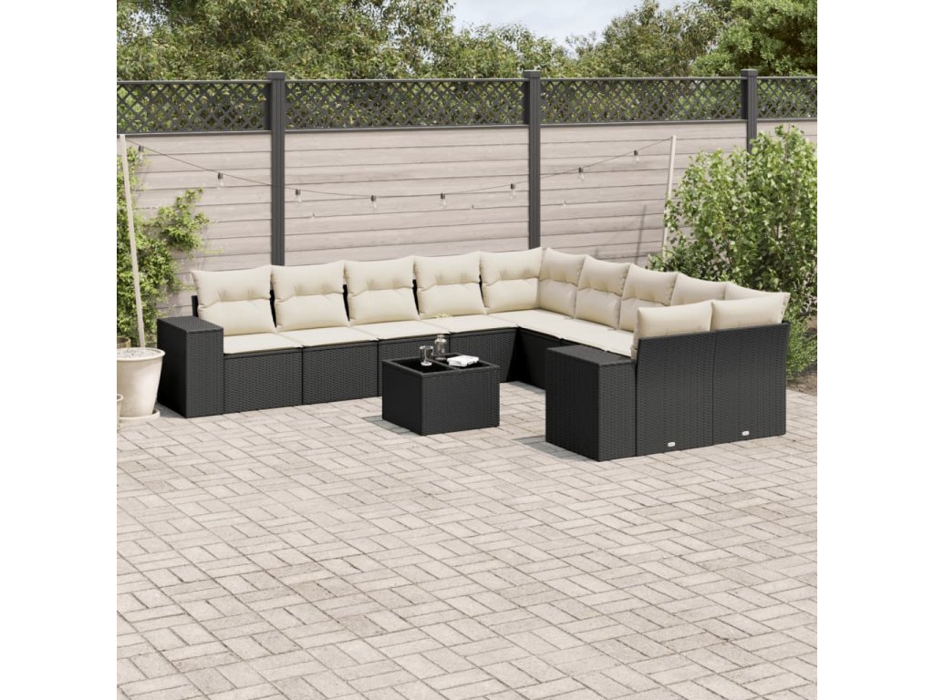 11dílná zahradní sedací souprava s poduškami černá polyratan 3255453