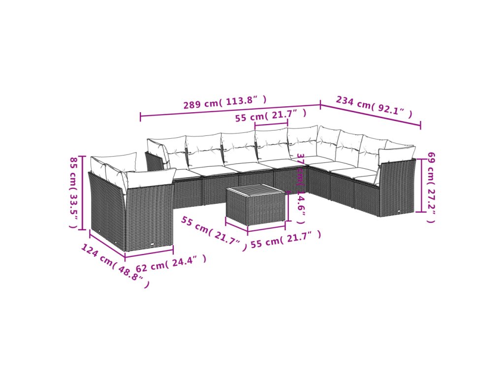 11dílná zahradní sedací souprava s poduškami černá polyratan 3256049