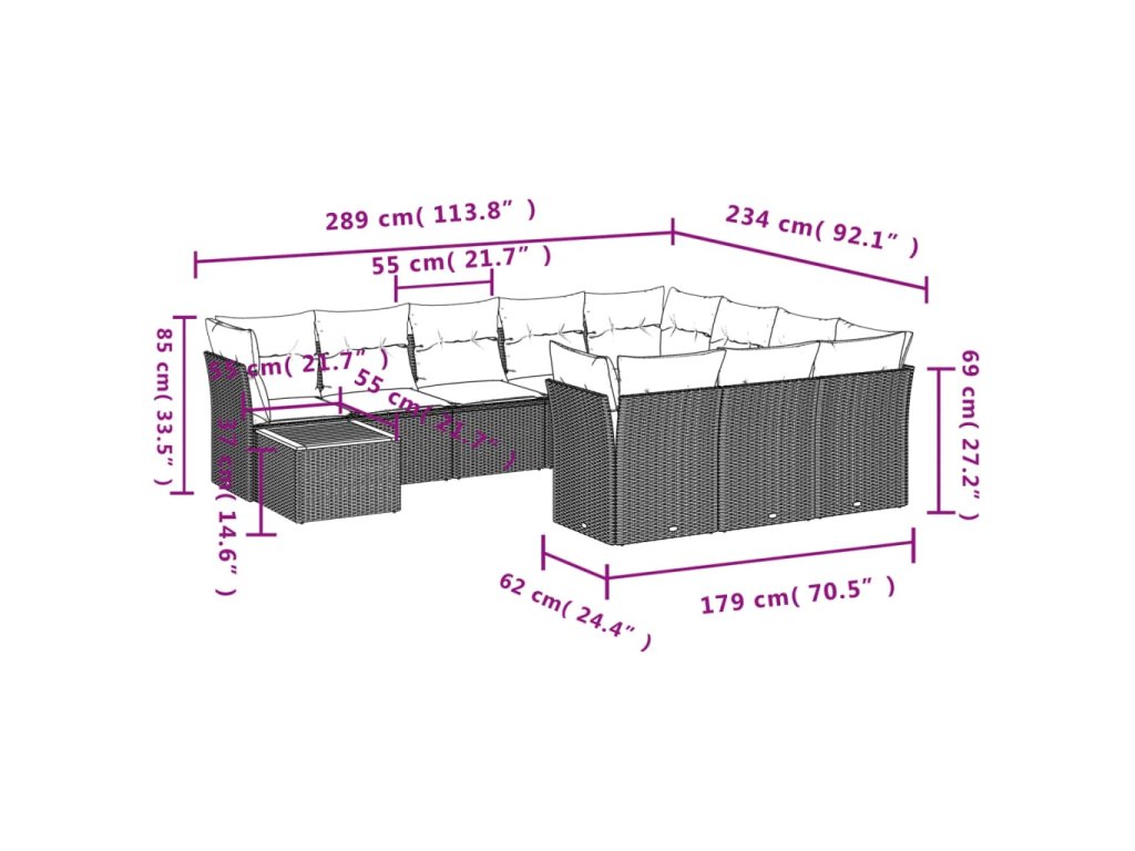11dílná zahradní sedací souprava s poduškami černá polyratan 3256175