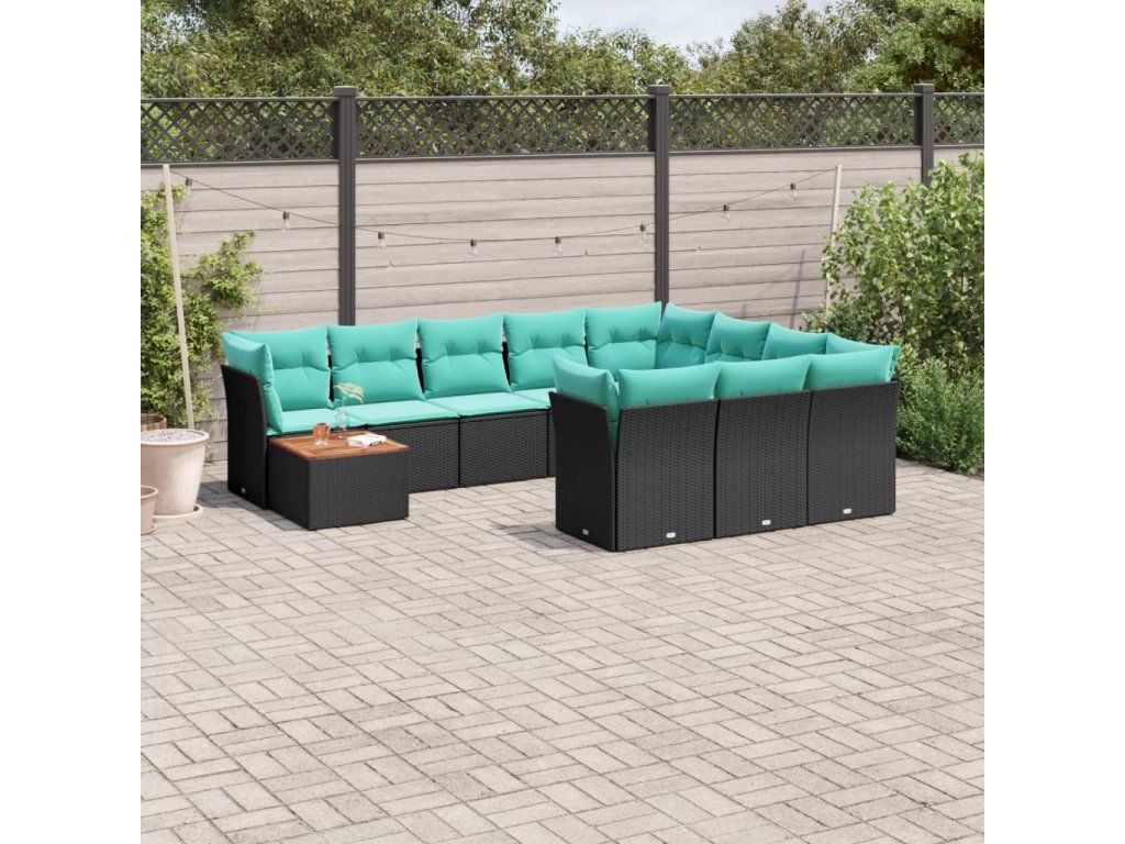 11dílná zahradní sedací souprava s poduškami černá polyratan 3256176