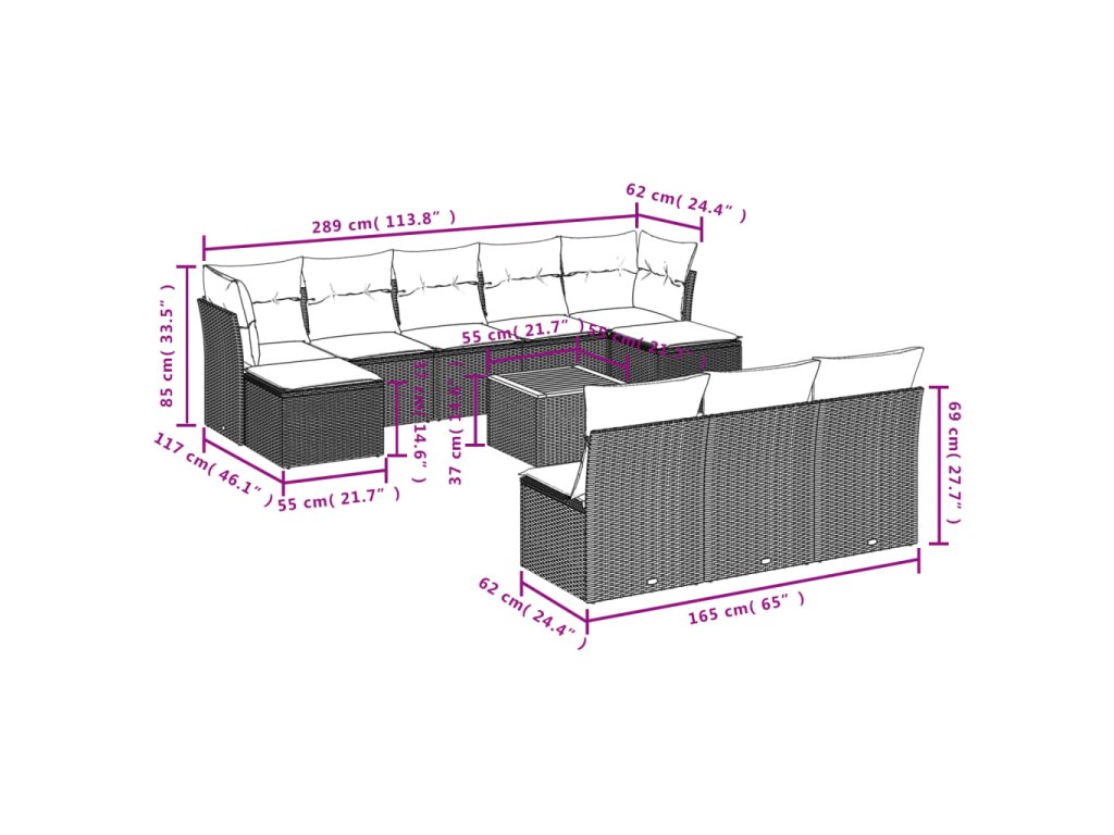 11dílná zahradní sedací souprava s poduškami černá polyratan 3256196
