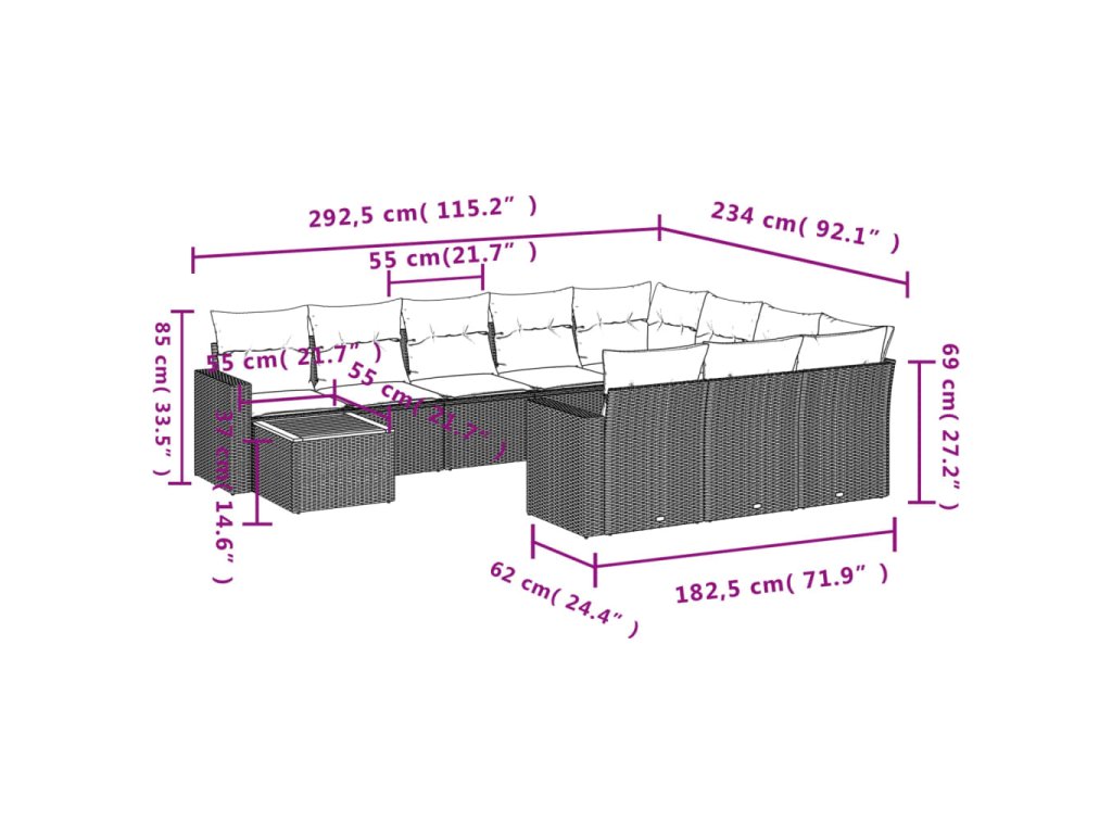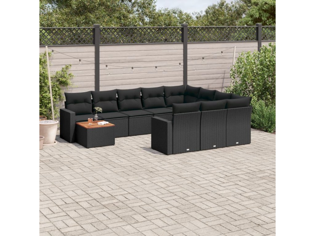 11dílná zahradní sedací souprava s poduškami černá polyratan 3256636