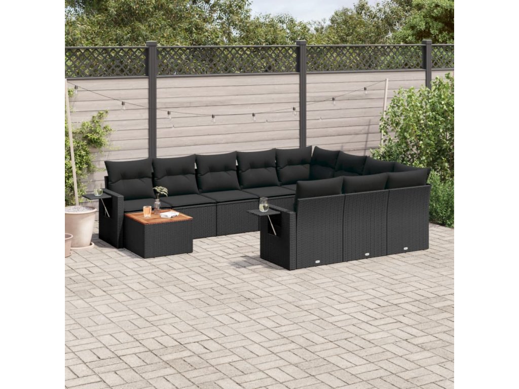 11dílná zahradní sedací souprava s poduškami černá polyratan 3257077
