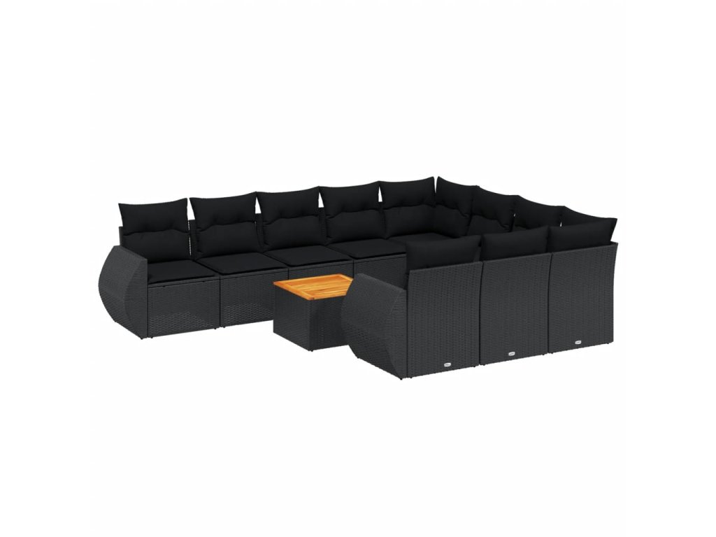 11dílná zahradní sedací souprava s poduškami černá polyratan 3257511