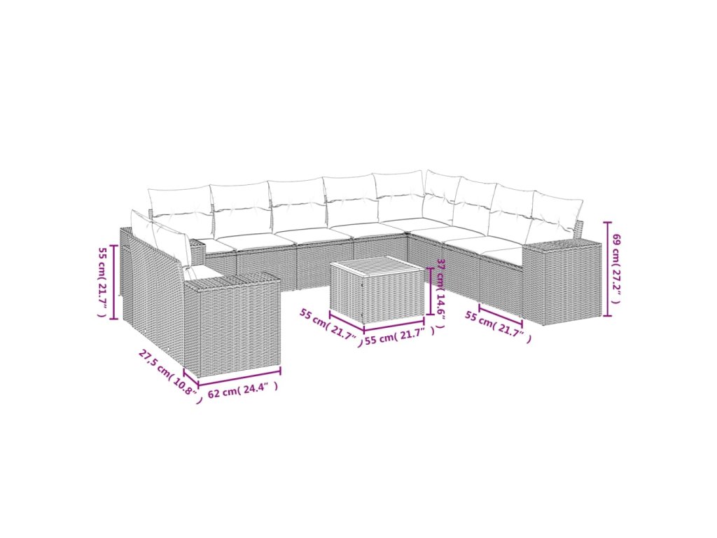 11dílná zahradní sedací souprava s poduškami černá polyratan 3257847