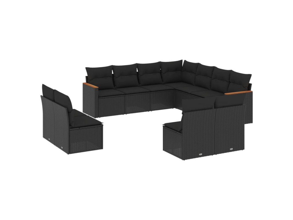 11dílná zahradní sedací souprava s poduškami černá polyratan 3258485