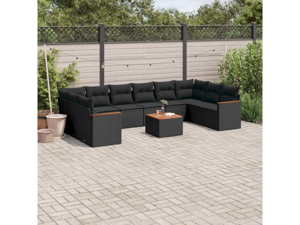 11dílná zahradní sedací souprava s poduškami černá polyratan 3258730