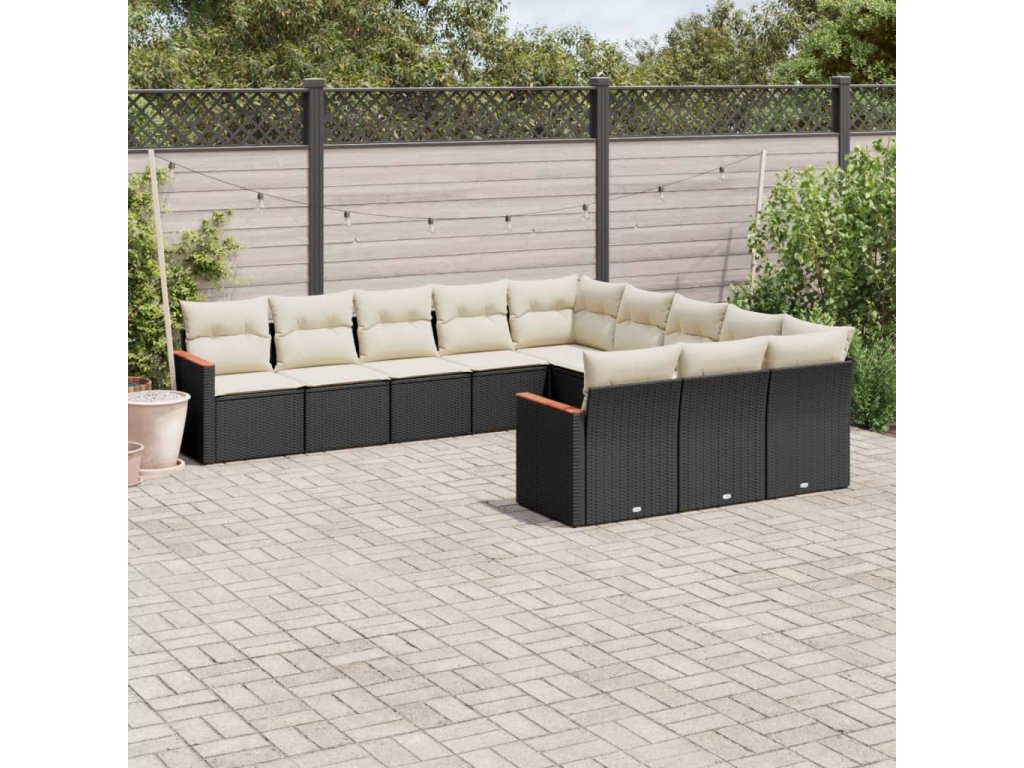 11dílná zahradní sedací souprava s poduškami černá polyratan 3258829