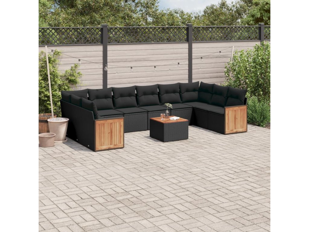 11dílná zahradní sedací souprava s poduškami černá polyratan 3260410