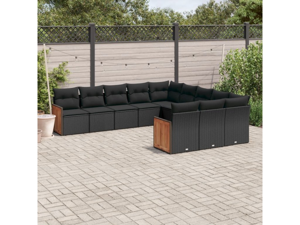11dílná zahradní sedací souprava s poduškami černá polyratan 3260508