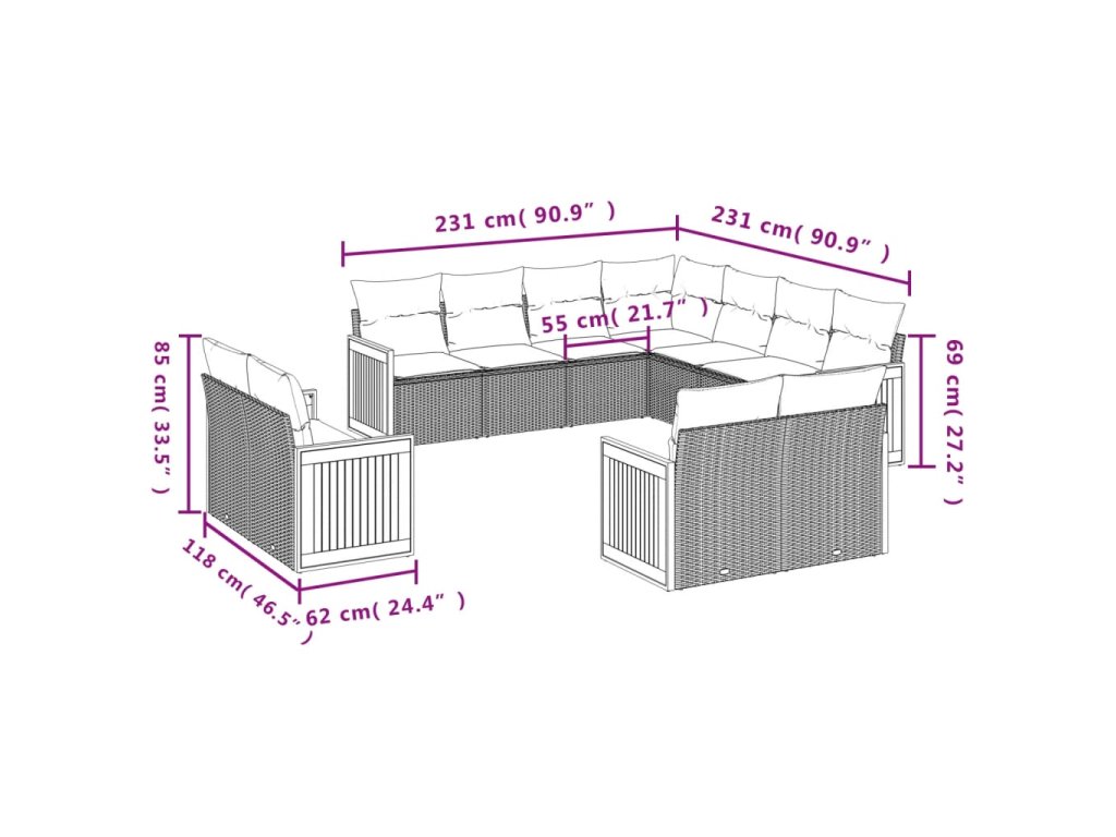 Tato zahradní sedací souprava je dokonalým doplňkem vaší zahrady, terasy nebo dvorku a poskytne vám pohodlné a příjemné místo, kde si můžete povídat s rodinou a přáteli nebo jen tak odpočívat a užívat si pobyt venku.