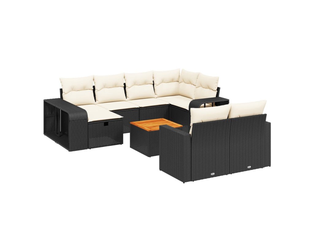 11dílná zahradní sedací souprava s poduškami černá polyratan 3266256