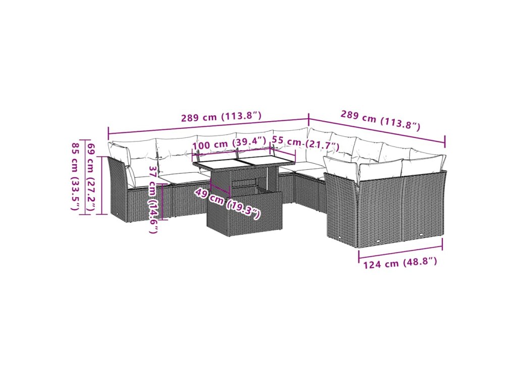 Tato zahradní sedací souprava je dokonalým doplňkem vaší zahrady, terasy nebo dvorku a poskytne vám pohodlné a příjemné místo, kde si můžete povídat s rodinou a přáteli nebo jen tak odpočívat a užívat si pobyt venku.