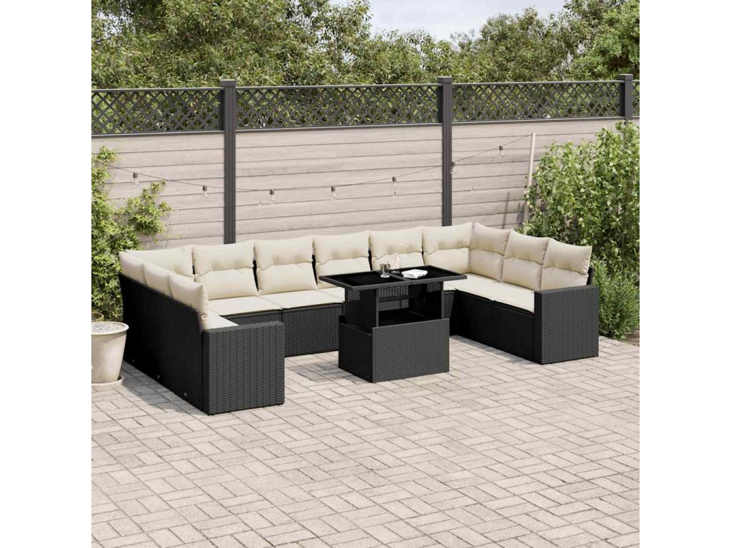 11dílná zahradní sedací souprava s poduškami černá polyratan 3267516