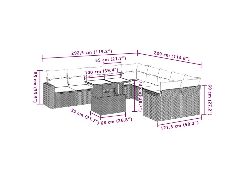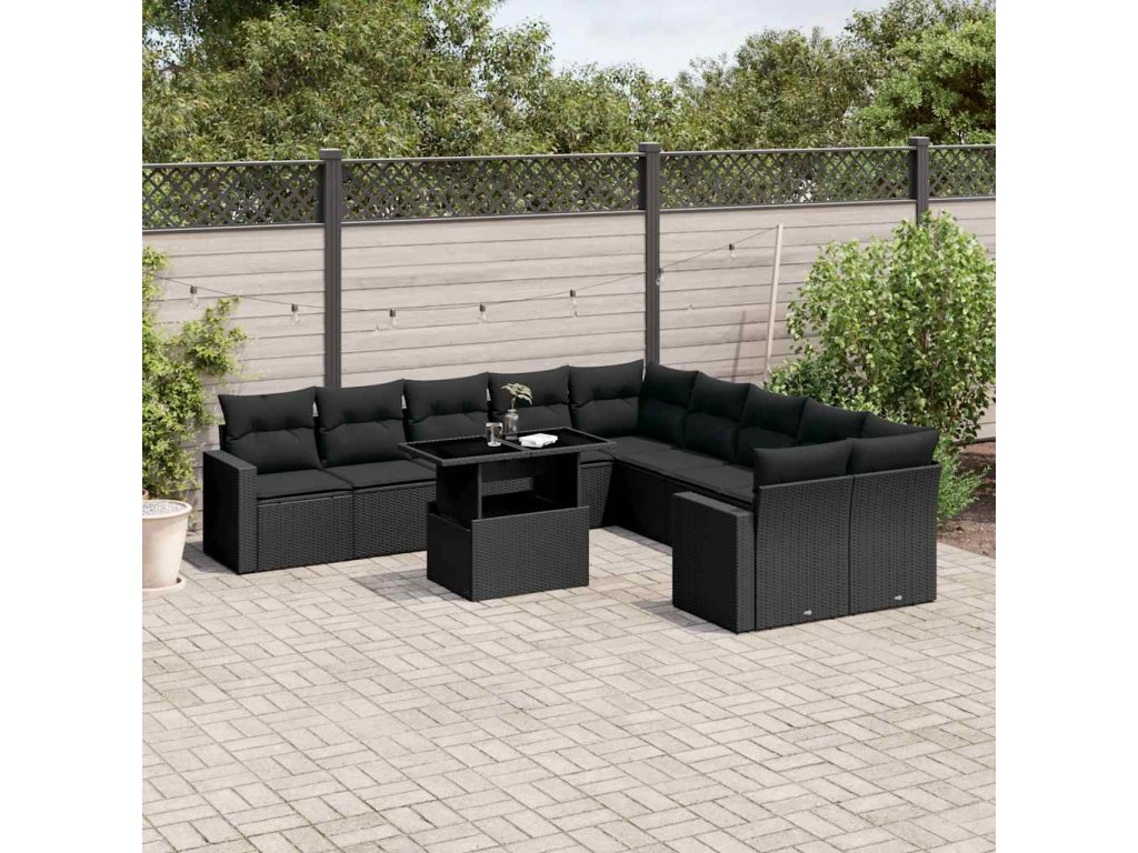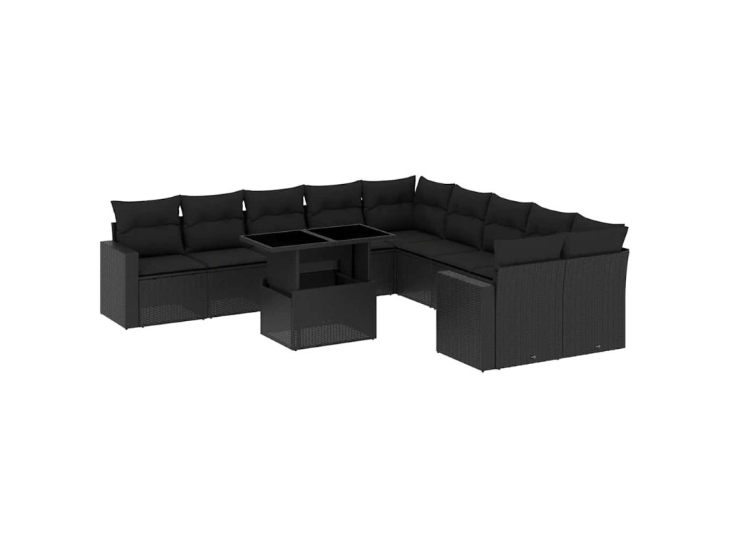 11dílná zahradní sedací souprava s poduškami černá polyratan 3267535