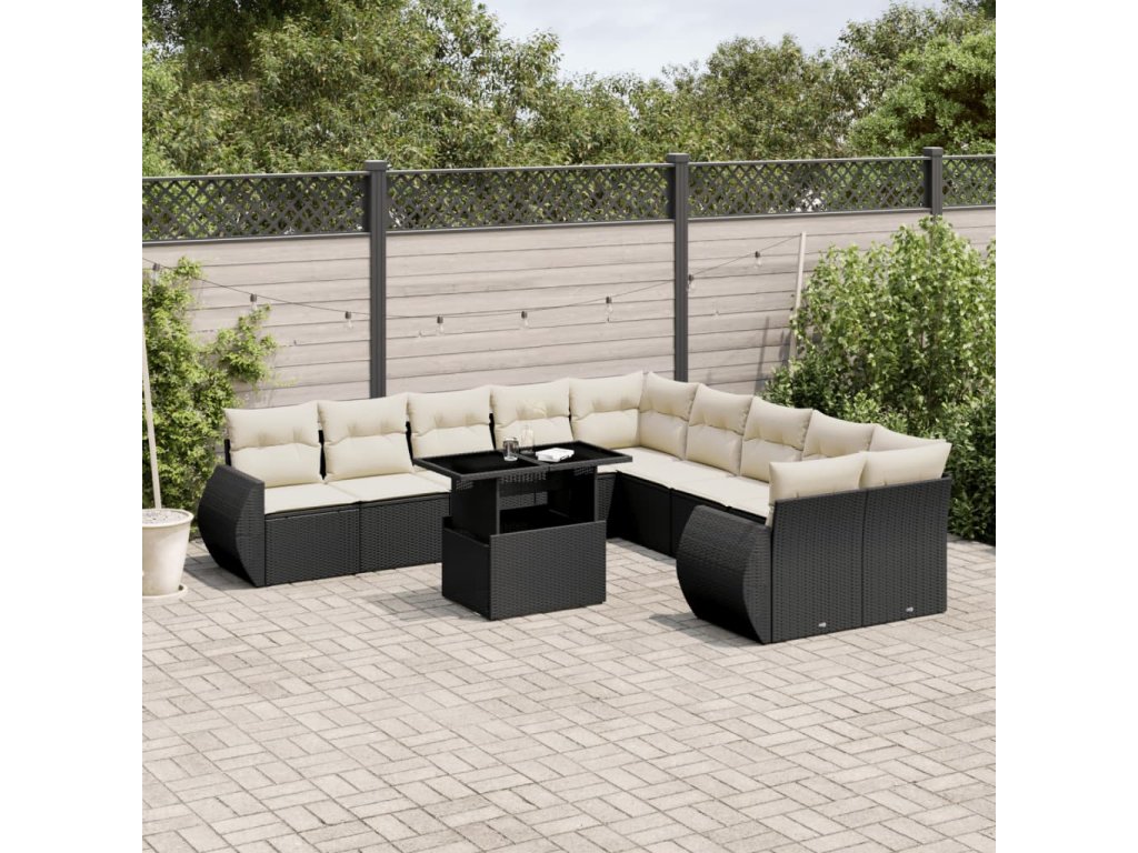 11dílná zahradní sedací souprava s poduškami černá polyratan 3268796