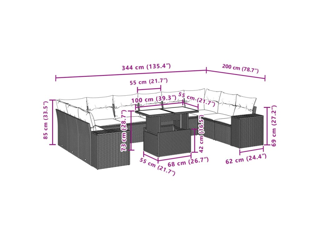 - Modulární design: Tato sada venkovního nábytku se vyznačuje modulární konstrukcí, je tedy zcela flexibilní a lze ji snadno přemisťovat, takže si můžete uspořádat venkovní nábytek dle vašich potřeb.