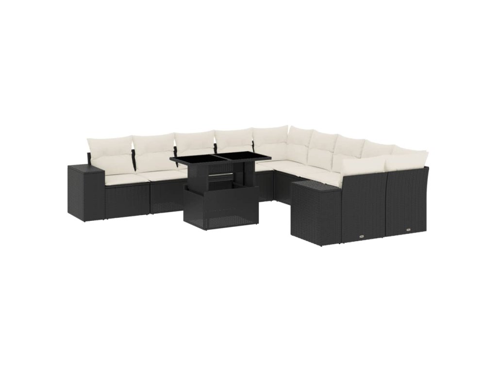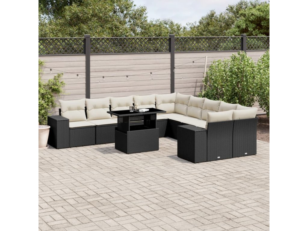 11dílná zahradní sedací souprava s poduškami černá polyratan 3269426