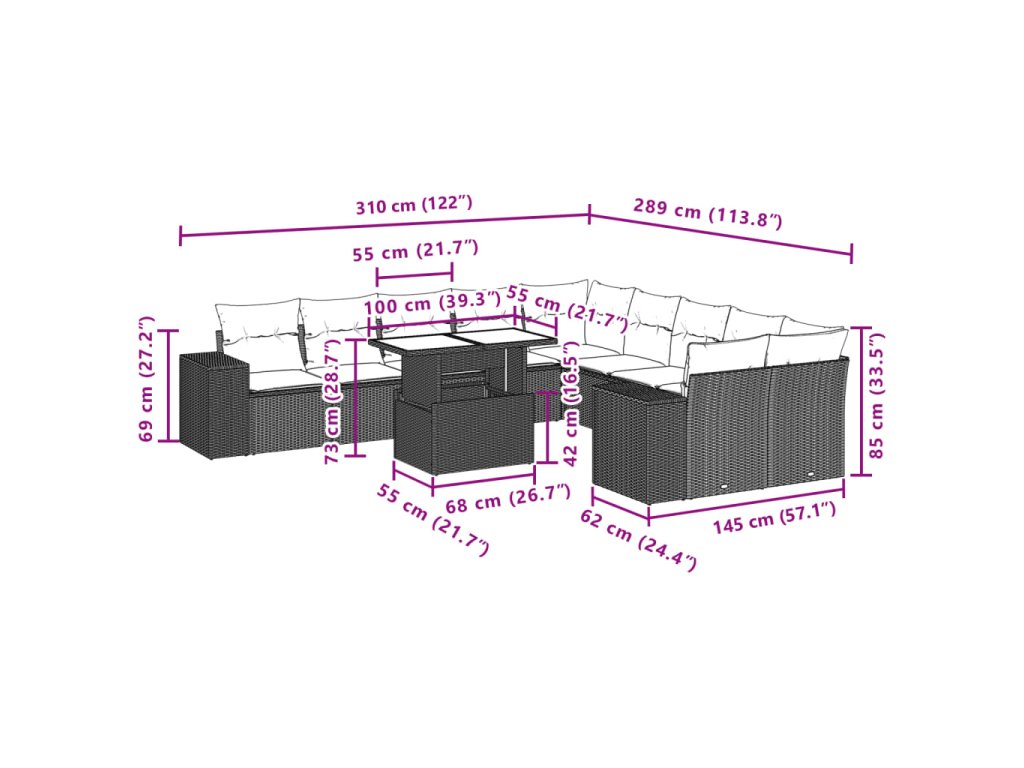 Tato zahradní sedací souprava je dokonalým doplňkem vaší zahrady, terasy nebo dvorku a poskytne vám pohodlné a příjemné místo, kde si můžete povídat s rodinou a přáteli nebo jen tak odpočívat a užívat si pobyt venku.