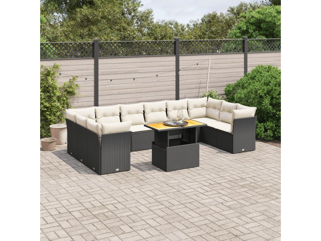 11dílná zahradní sedací souprava s poduškami černá polyratan 3271021