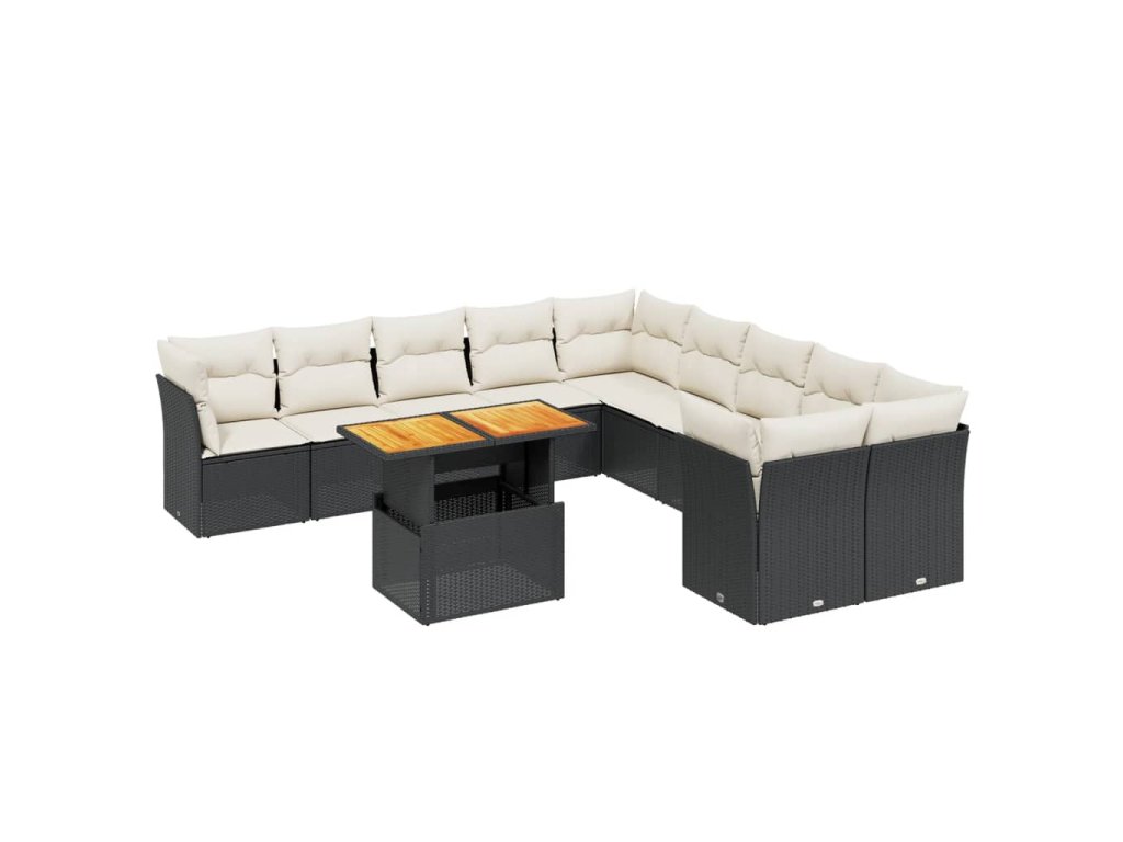 11dílná zahradní sedací souprava s poduškami černá polyratan 3271042