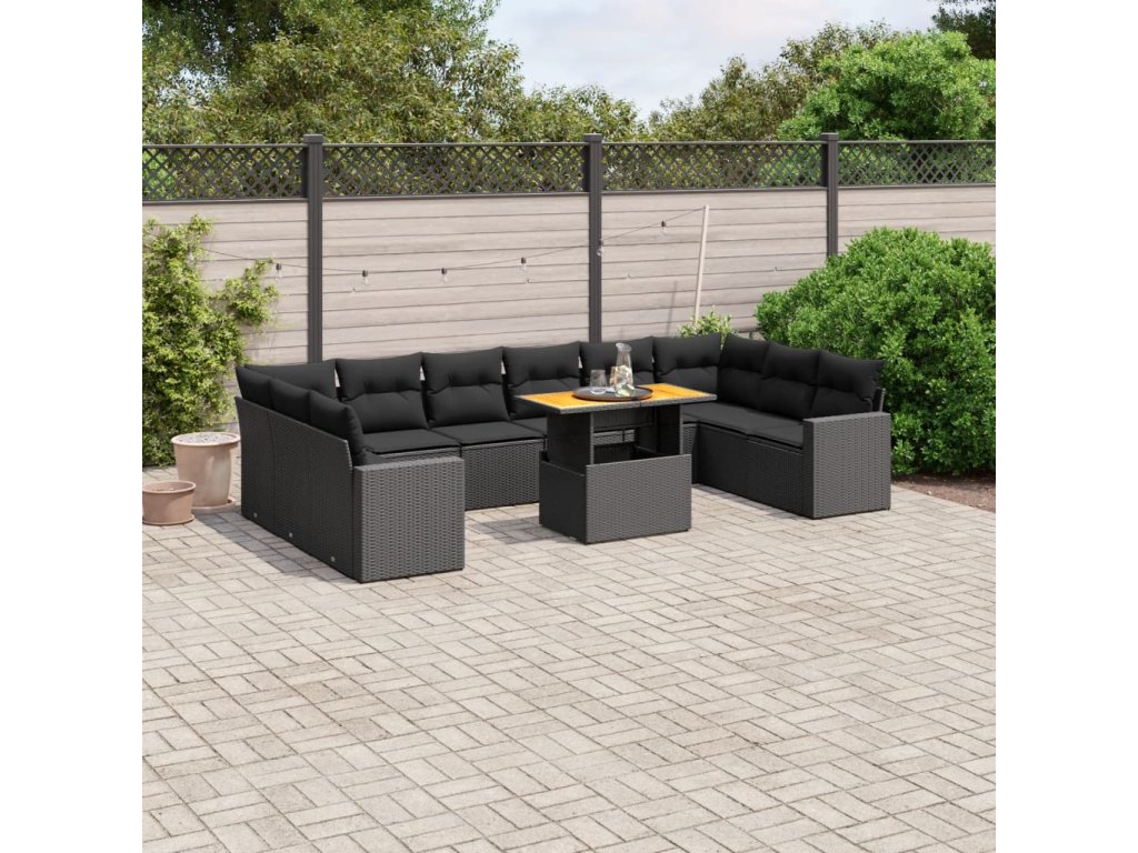 11dílná zahradní sedací souprava s poduškami černá polyratan 3271482
