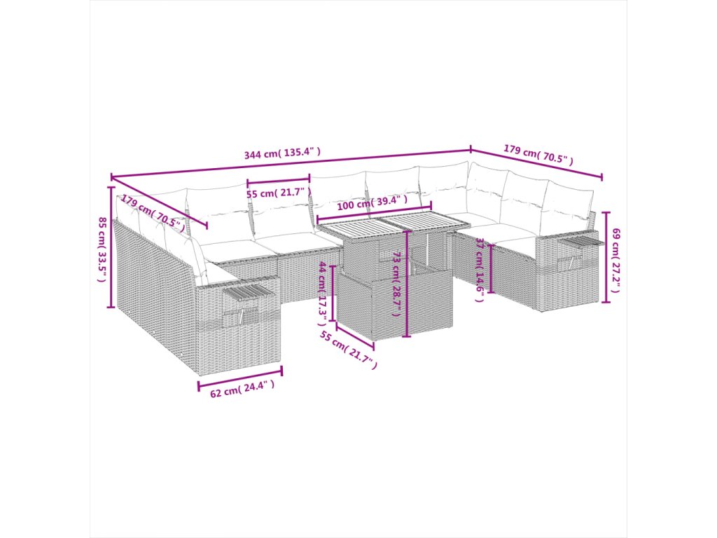 Tato zahradní sedací souprava je dokonalým doplňkem vaší zahrady, terasy nebo dvorku a poskytne vám pohodlné a příjemné místo, kde si můžete povídat s rodinou a přáteli nebo jen tak odpočívat a užívat si pobyt venku.