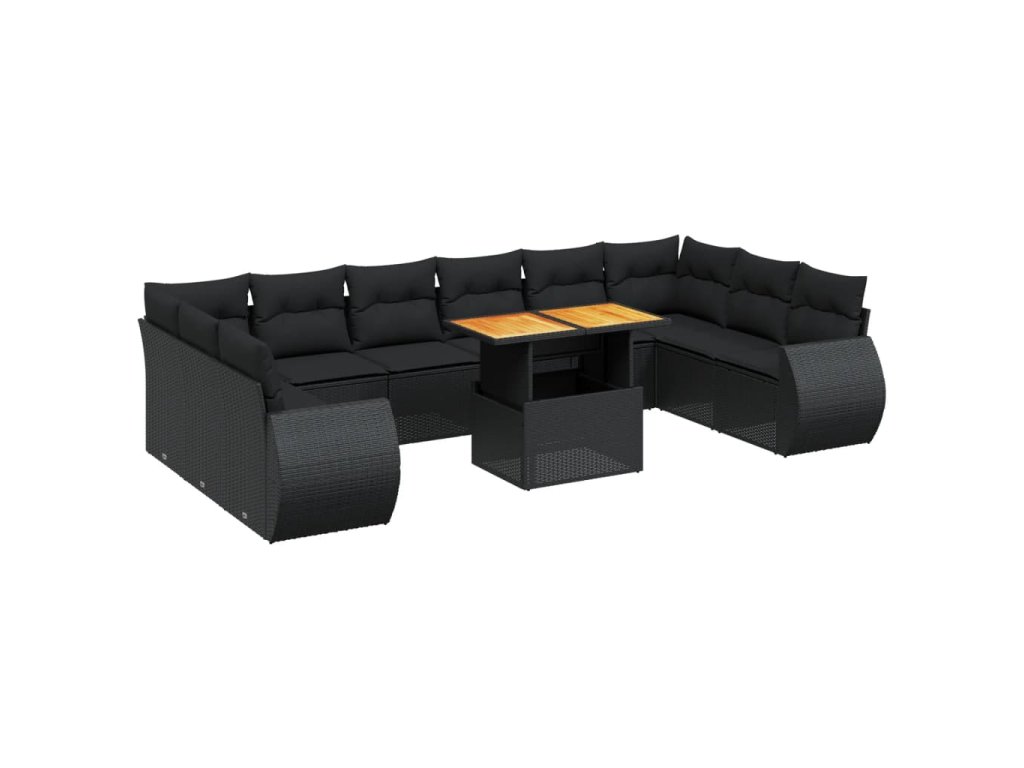 11dílná zahradní sedací souprava s poduškami černá polyratan 3272364