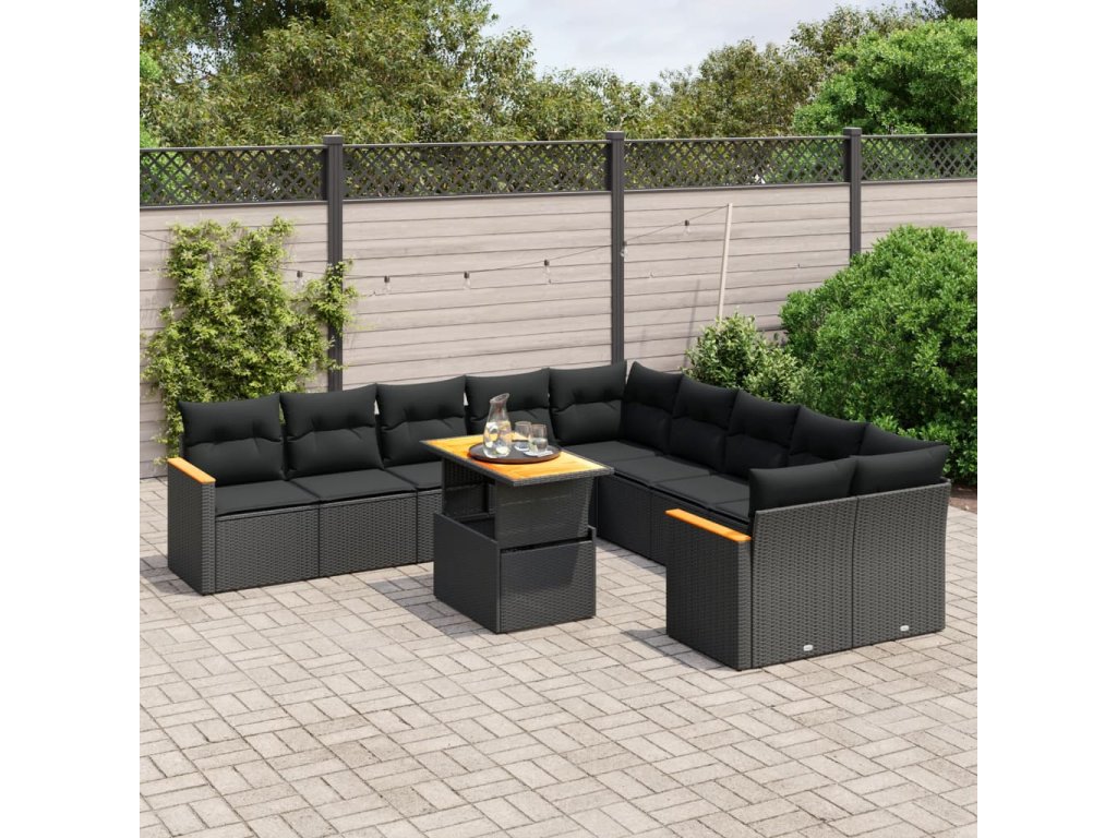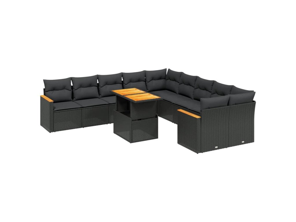 11dílná zahradní sedací souprava s poduškami černá polyratan 3273260