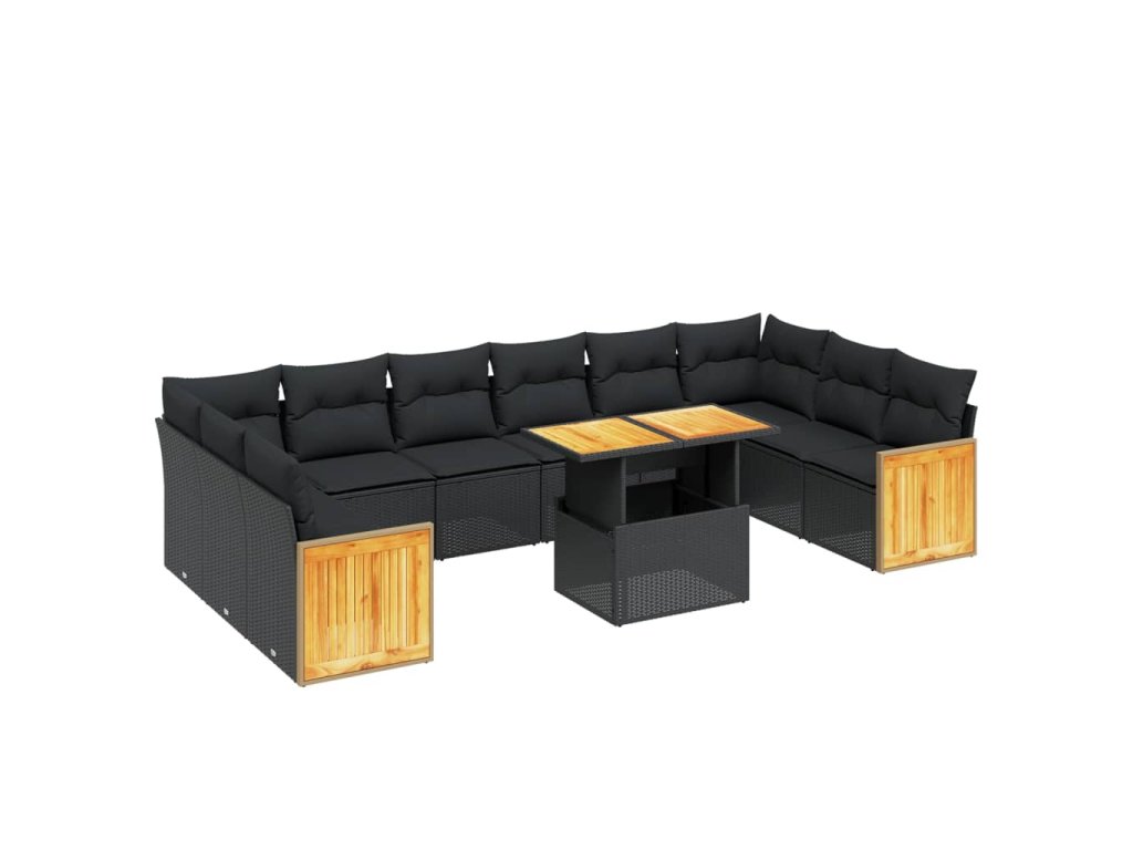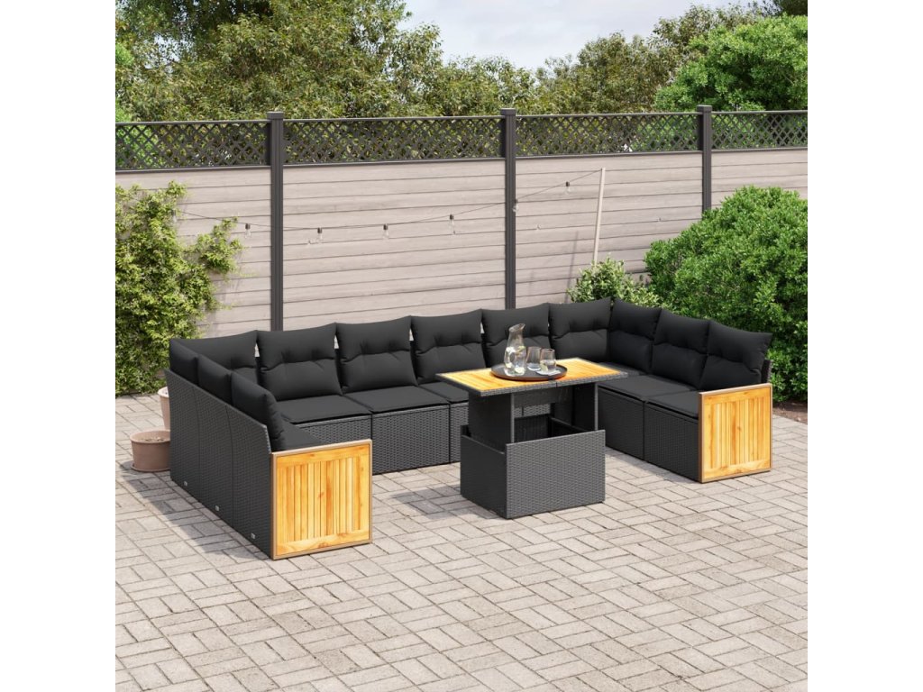 11dílná zahradní sedací souprava s poduškami černá polyratan 3274128
