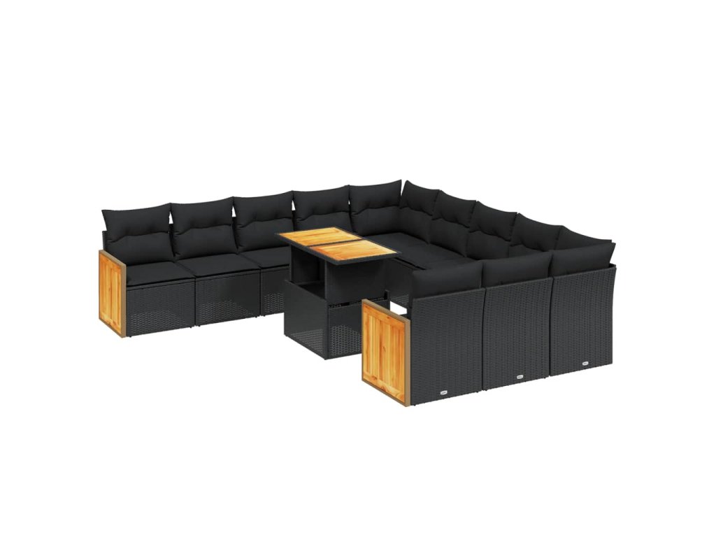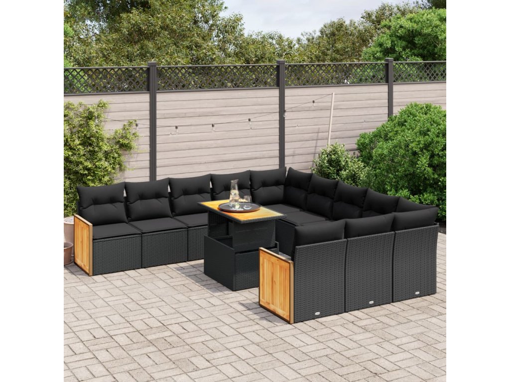 11dílná zahradní sedací souprava s poduškami černá polyratan 3274142