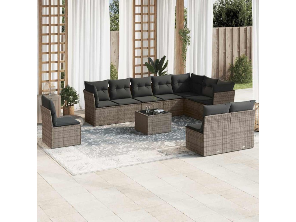 11dílná zahradní sedací souprava s poduškami šedá polyratan 3217810