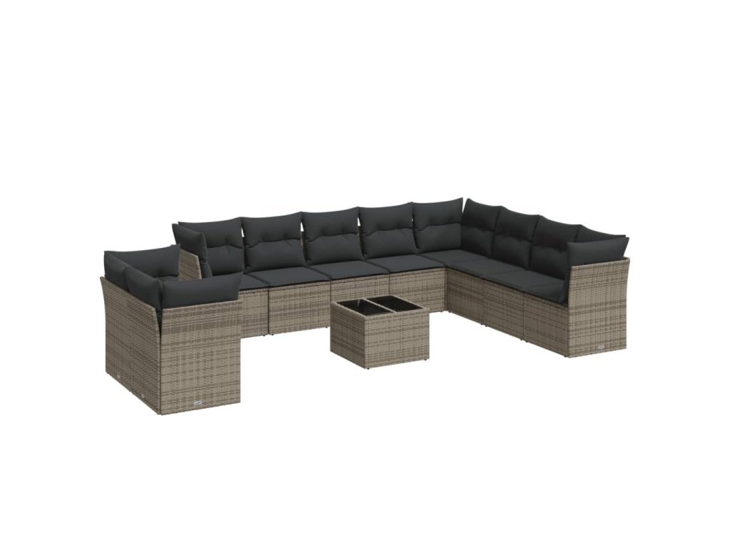 11dílná zahradní sedací souprava s poduškami šedá polyratan 3217870