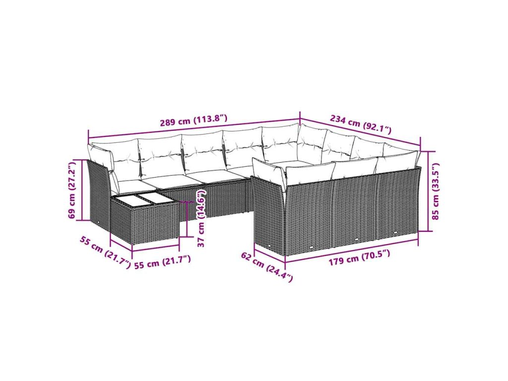 11dílná zahradní sedací souprava s poduškami šedá polyratan 3218262