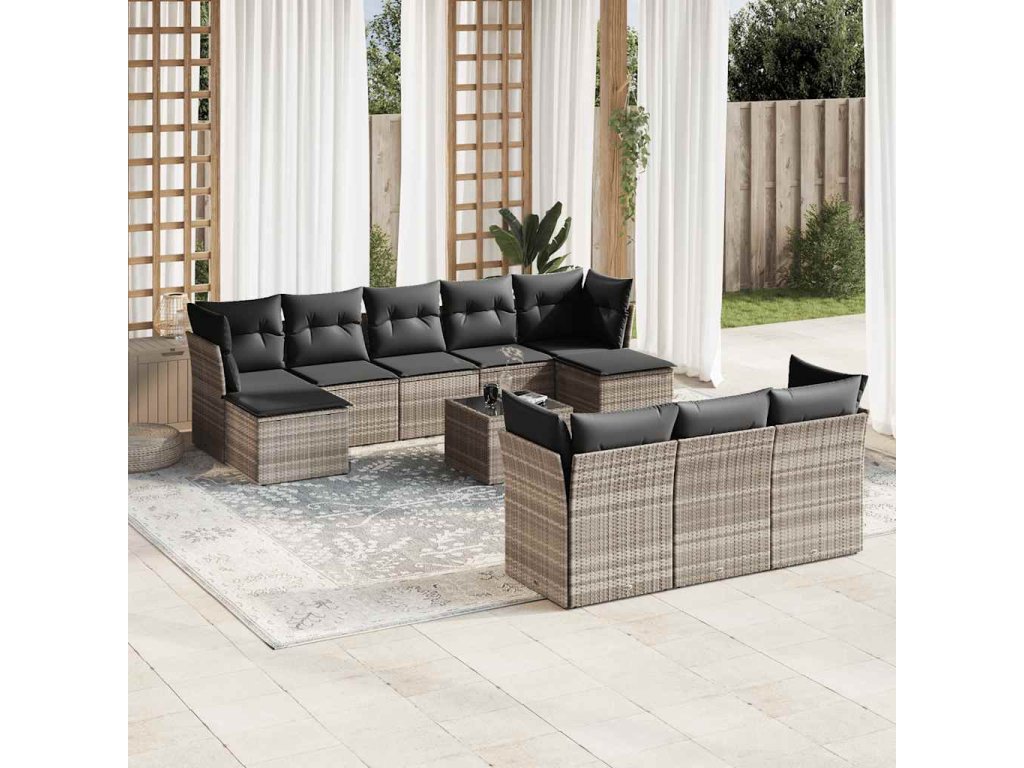 11dílná zahradní sedací souprava s poduškami šedá polyratan 3218342