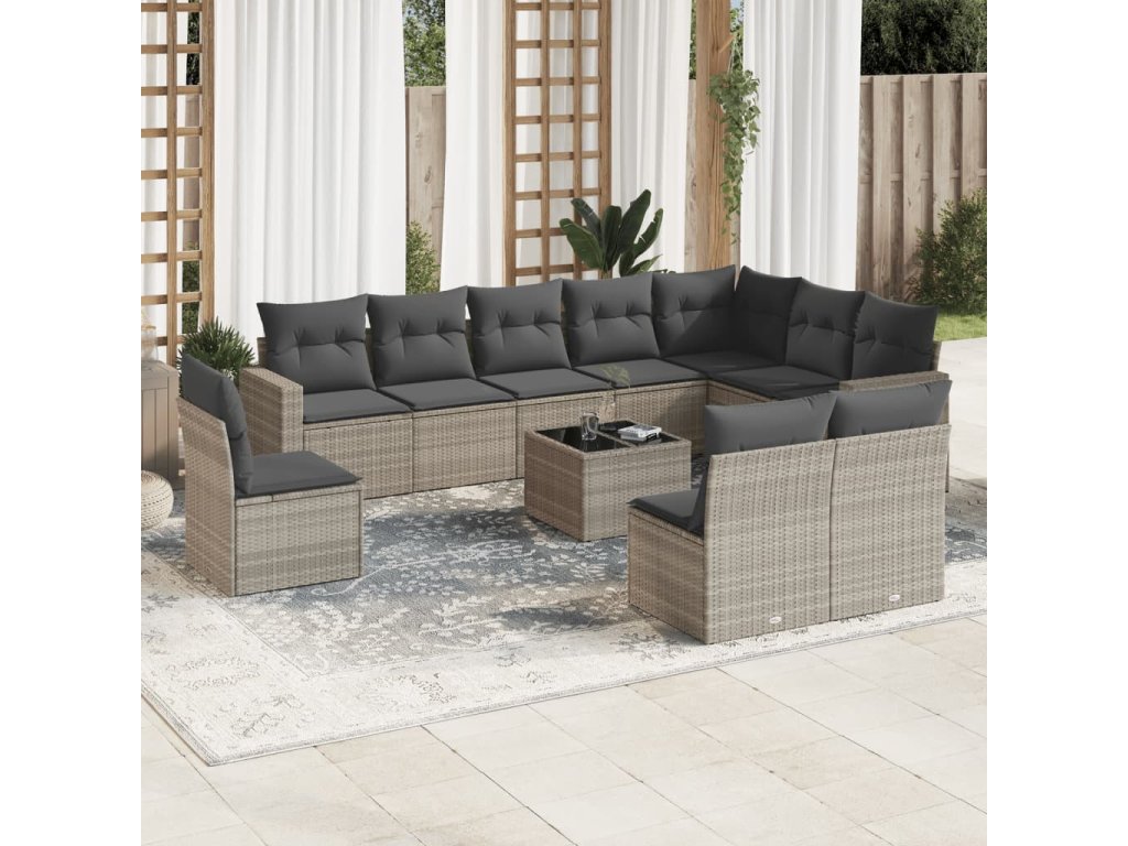 11dílná zahradní sedací souprava s poduškami šedá polyratan 3219112