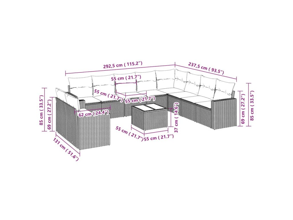 Tato zahradní sedací souprava je dokonalým doplňkem vaší zahrady, terasy nebo dvorku a poskytne vám pohodlné a příjemné místo, kde si můžete povídat s rodinou a přáteli nebo jen tak odpočívat a užívat si pobyt venku.