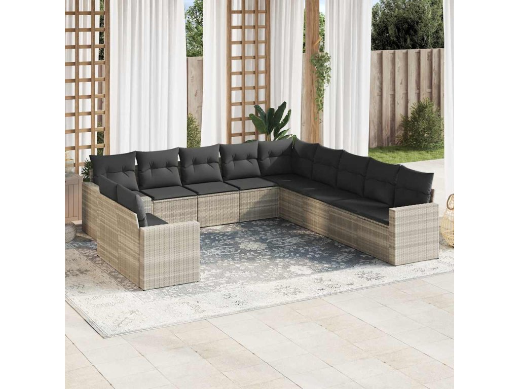 11dílná zahradní sedací souprava s poduškami šedá polyratan 3219182