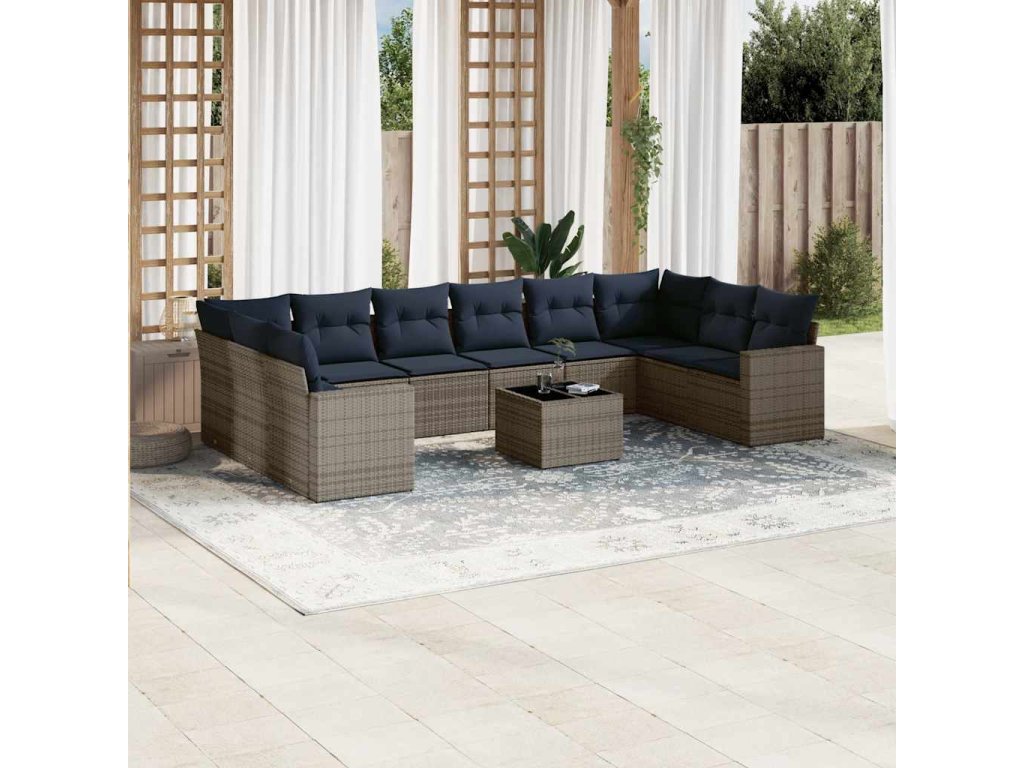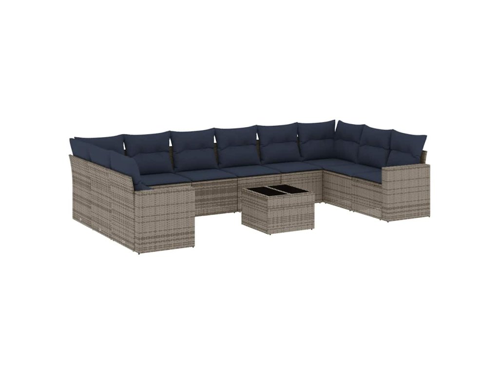 11dílná zahradní sedací souprava s poduškami šedá polyratan 3219471