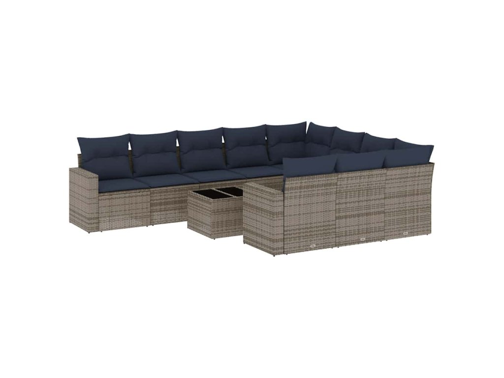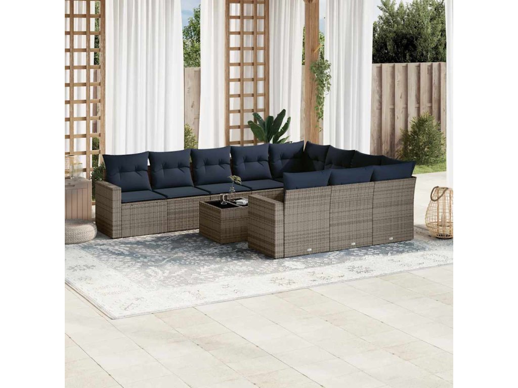 11dílná zahradní sedací souprava s poduškami šedá polyratan 3219491