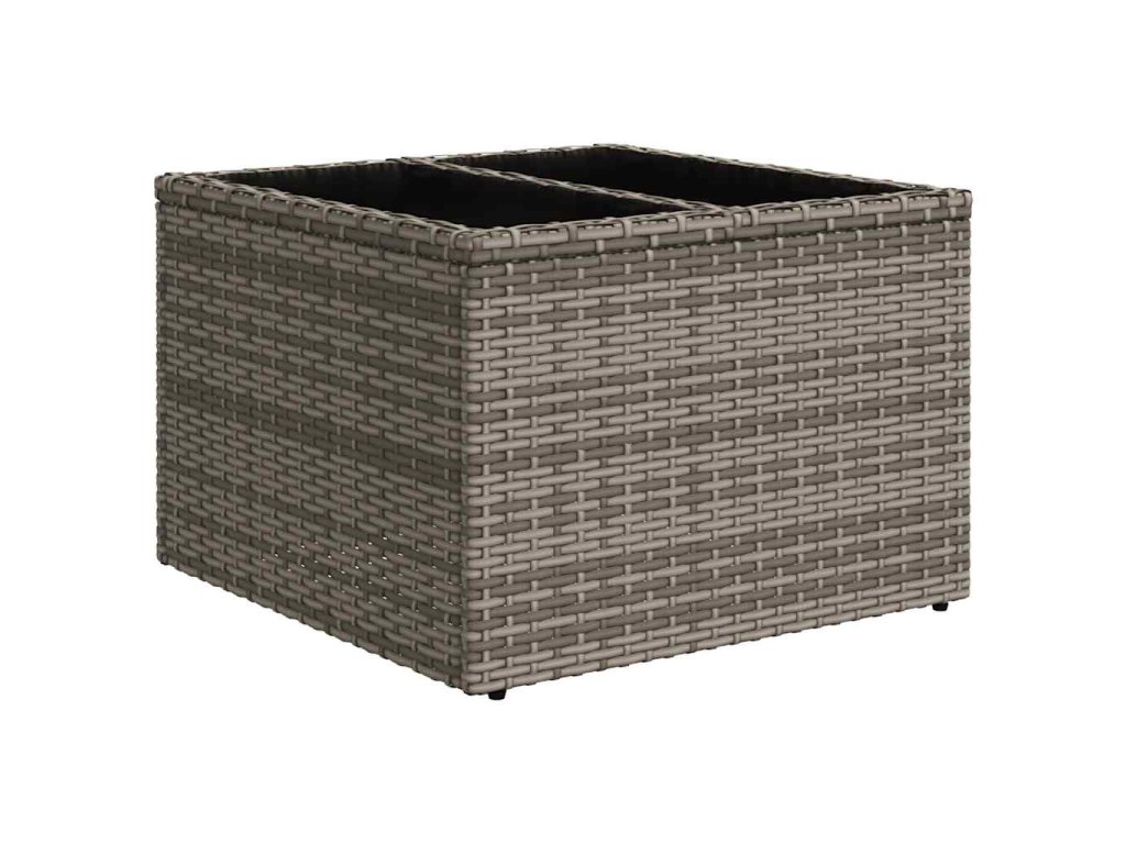 - Materiál: PE ratan, práškově lakovaná ocel, tvrzené sklo