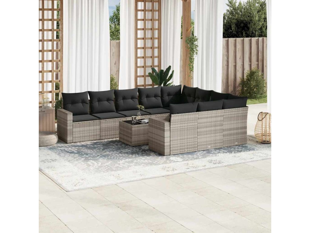 11dílná zahradní sedací souprava s poduškami šedá polyratan 3219492